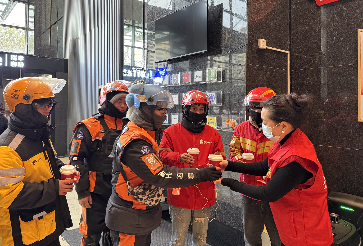 “中午容易犯困,能喝上这样一杯咖啡真是意外之喜。”天猫超市骑手何召进捧紧手中的咖啡,满足地喝了一大口。“天气寒冷,我们看着外卖小哥们风里来、雨里去,总想为他们做点什么。”库迪咖啡滨江店工作人员沈豪杰表示,“于是借这次活动,为‘城市超人’准备了咖啡饮品,希望带给他们一份冬日的温暖。”